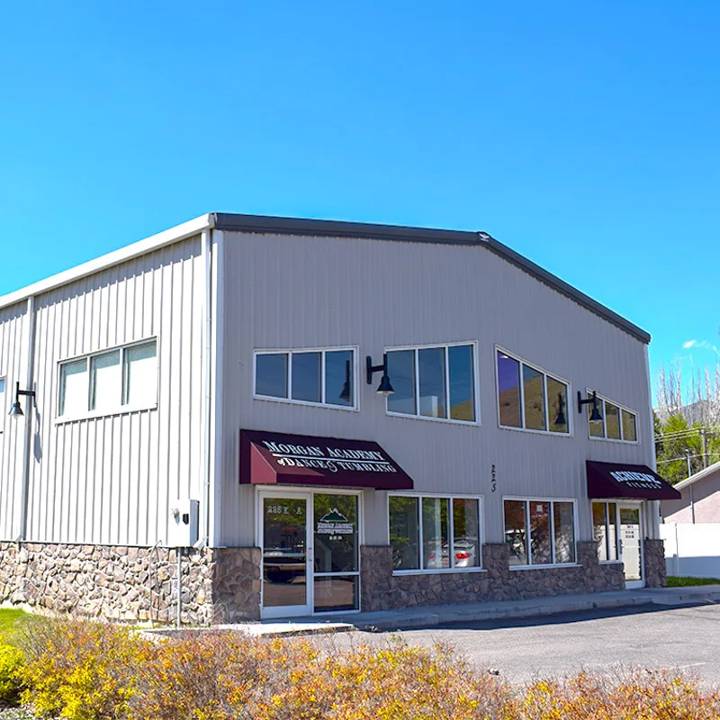Center Point Construction built this two-story, steel-framed facility in the heart of Morgan to serve as a versatile fitness and dance space. The open-concept design accommodates exercise equipment, office space, and a large studio area designed for flexibility and community use.